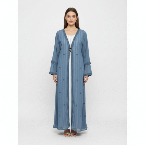 Front-Open Mida Print Abaya with Shirt Collar & Elastic Sleeves (Blue Floral)