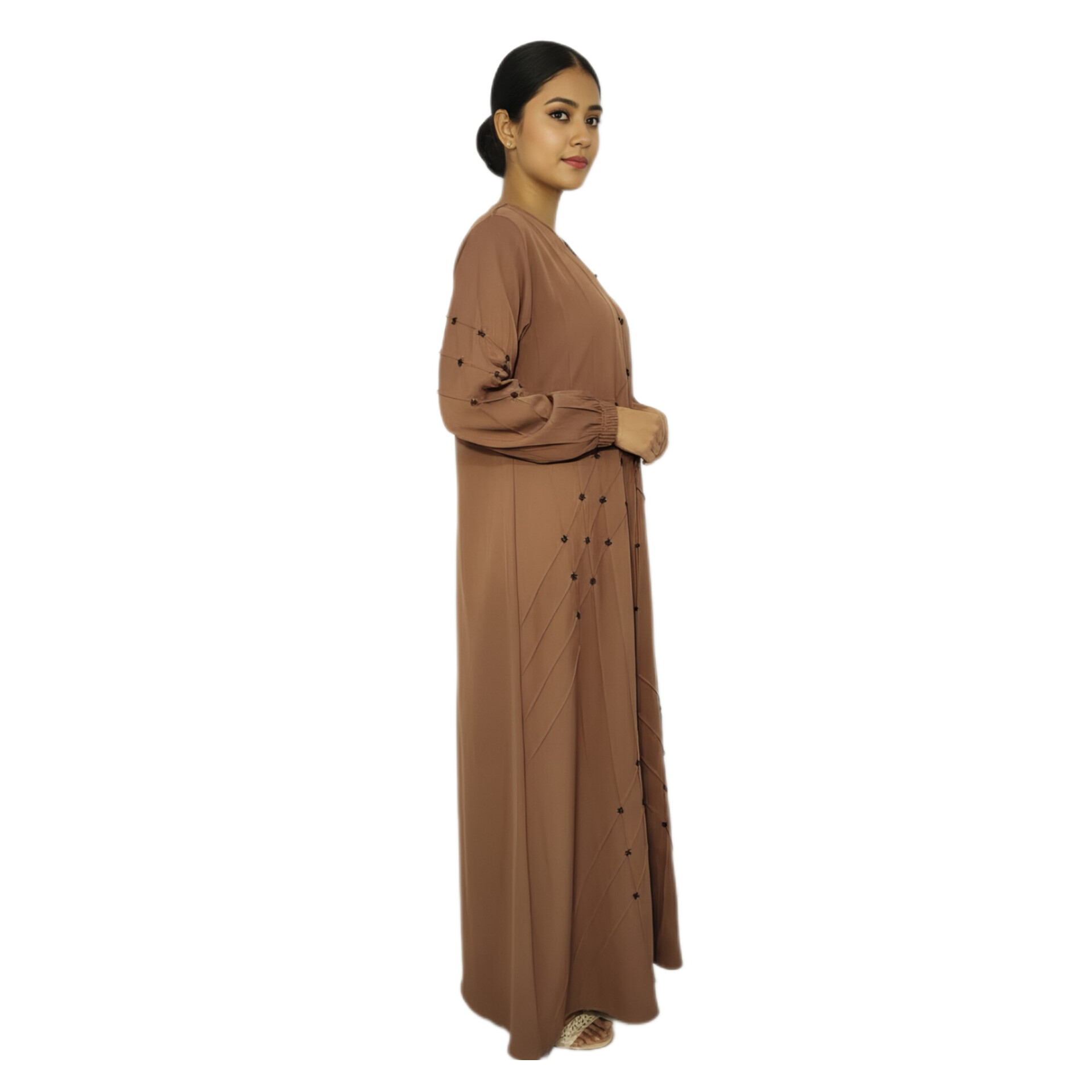This abaya is made from high-quality Important Zoom Fabric, which is slightly thick, soft, and has a smooth silky finish. The fabric provides excellent fall and comfort, making it perfect for daily use, office wear, or casual occasions.
