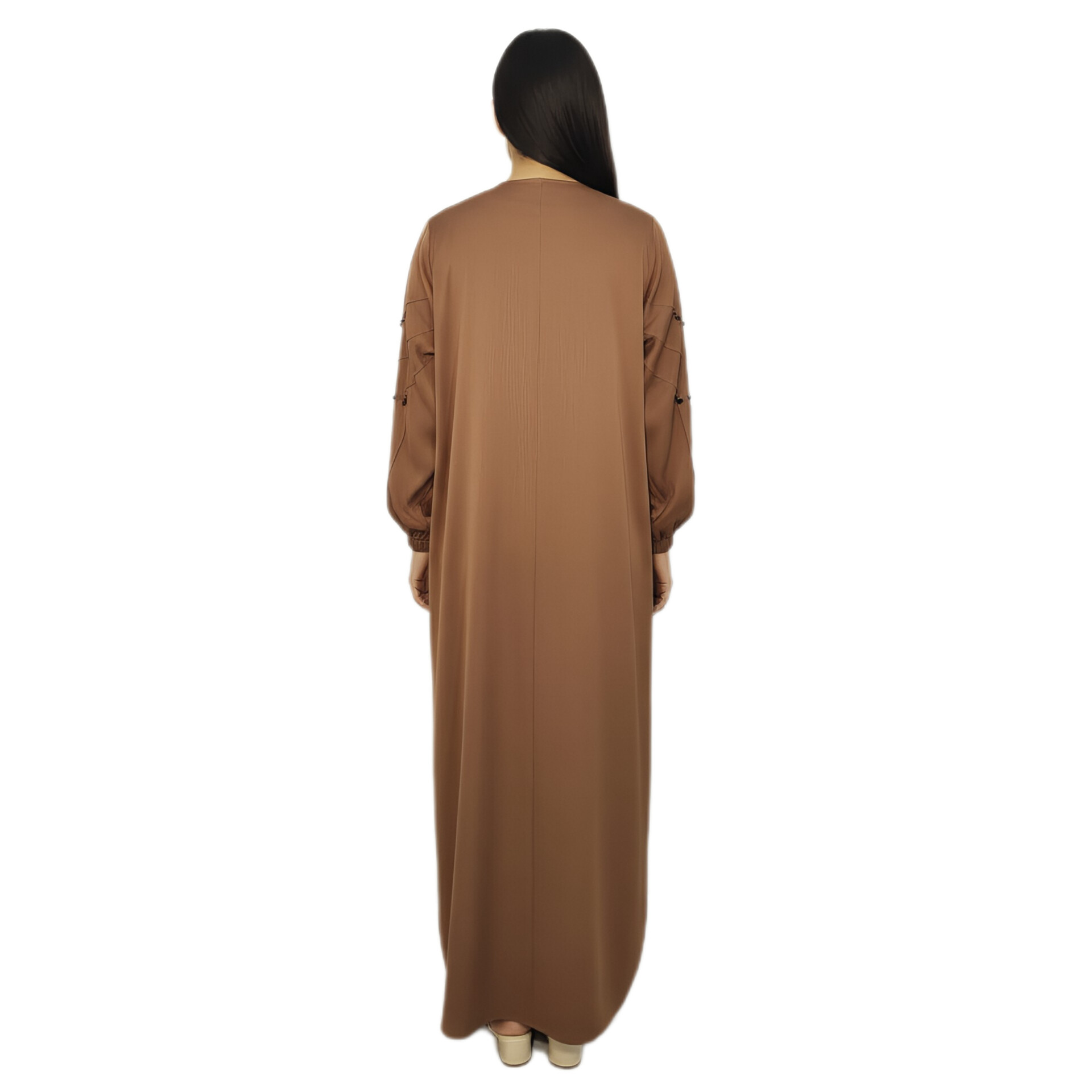Designed in a full-length modest style, this abaya gives complete coverage and a graceful look for women who prefer simple and elegant fashion.