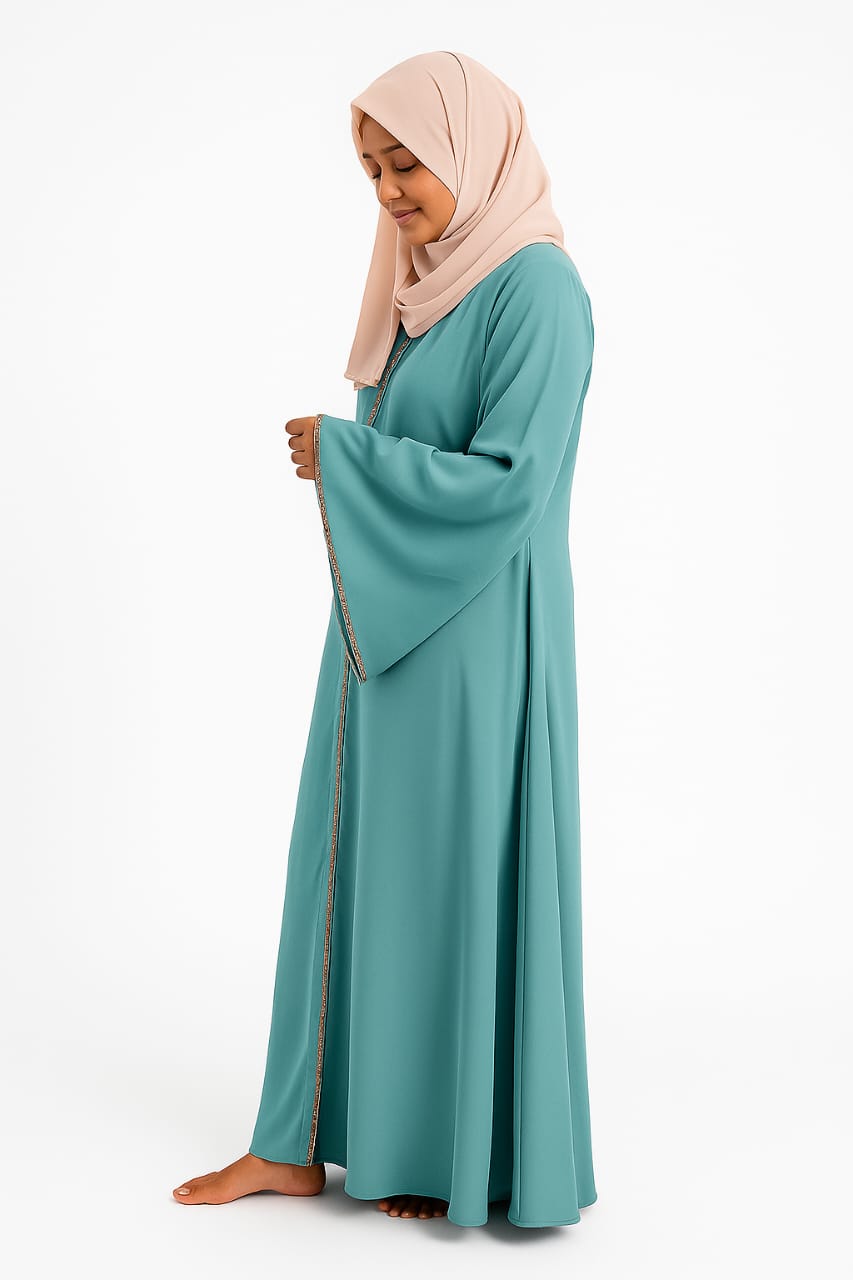 This abaya is made from Important Nida fabric, known for its soft, smooth and comfortable feel.